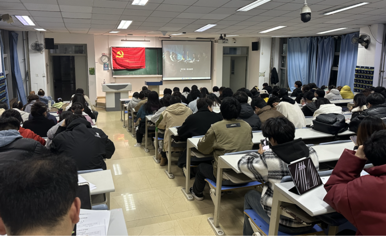 学思践悟,筑牢信仰根基。主题观影环节,全体学员分批次集中观看爱国主义影片《功勋》《建党伟业》,重温共和国功勋人物的奋斗史诗。榜样的力量穿越时空,引发强烈共鸣,学员们纷纷表态,要以先锋人物为榜样,在科研攻关、学习生活中主动担当、勤奋钻研,以实际行动诠释入党初心。