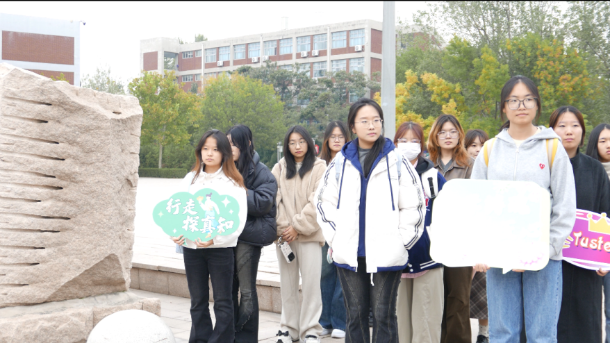 活动的第一站来到了天津科技大学校名石和生物工程学院实验楼。在这里,一场金培松科学家精神专题实践课程火热进行。马克思主义学院赵红伟老师从科研报国初心、创新与求实、团队协作与育人三个关键维度展开深入讲解。
