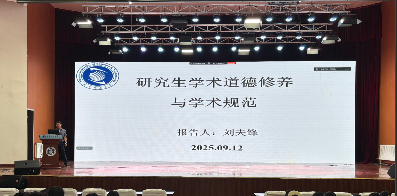刘教授以哲学入题,结合自身数年的科研经历与国内外典型案例如数据造假、抄袭剽窃等,深刻阐述了学术诚信对个人学术生涯、学校声誉乃至国家科技创新的重大意义。同时,他结合了当下发生学术造假案件,深入剖析了当前研究生群体中存在学术失德和学术不规范的具体原因,他强调了“实事求是、精益求精”是科研工作的生命线,呼吁全体师生将学术道德内化为价值追求,外化为自觉行动,共同守护学术殿堂的圣洁,听众反响热烈,纷纷表示深受启迪。