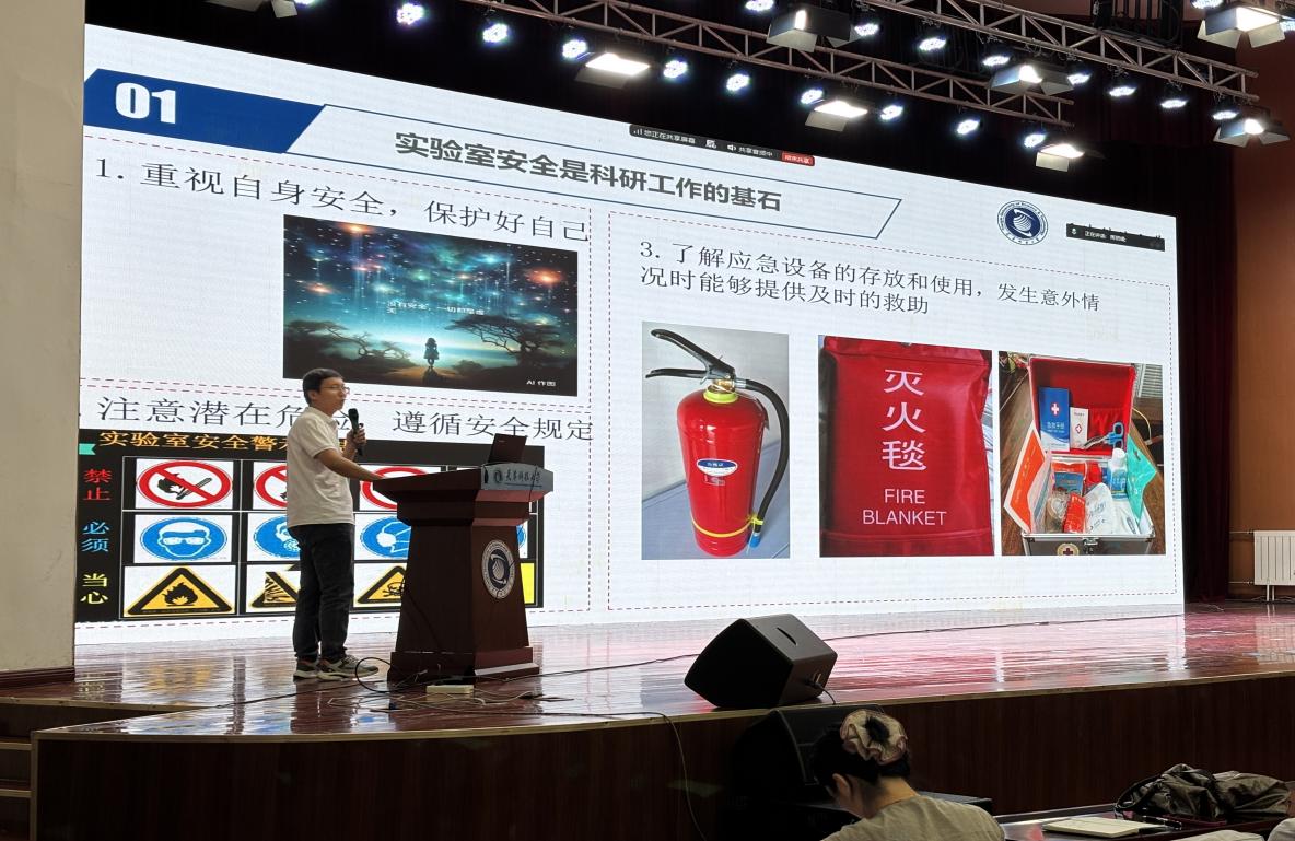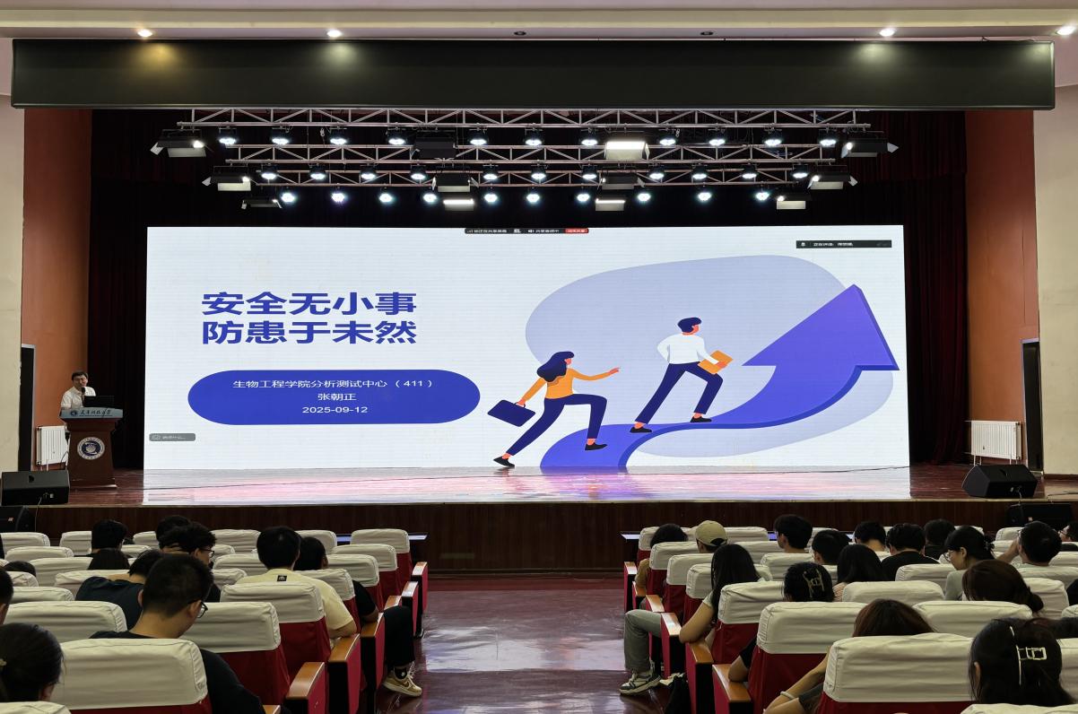 科研实验,安全先行。生物工程学院2025级研究生新生实验室安全教育讲座于9月12日在滨海校区西院言泉楼千人礼堂举行。本次讲座由辅导员周丽媛和孙港华主持,旨在增强学生的实验室安全风险防范意识,让同学们深刻认识到实验室安全的重要性。