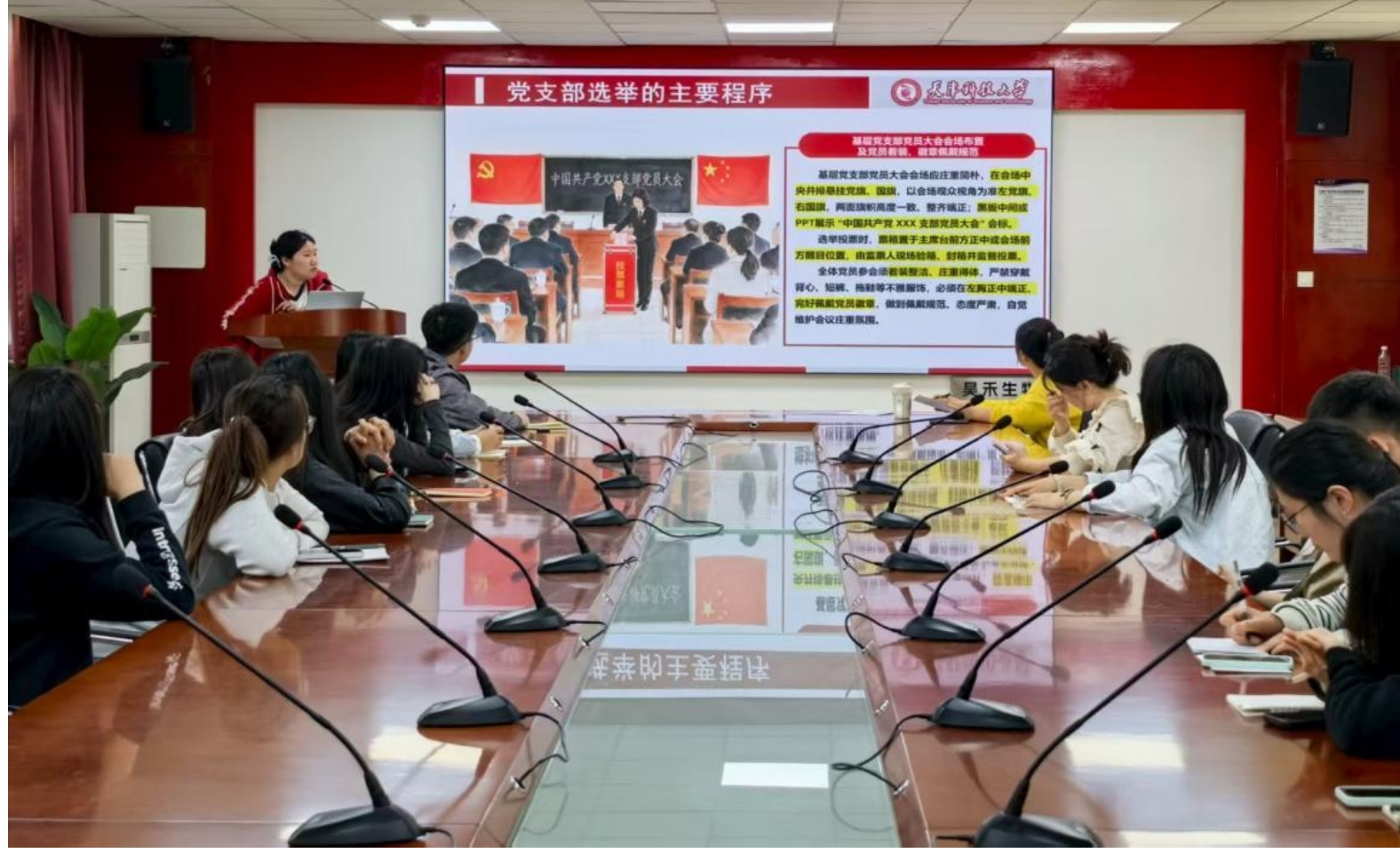 会上,吴逸晨紧扣基层党组织建设要求,系统拆解党支部换届选举全流程,重点讲解“三上三下”核心规范,逐项梳理各环节材料、时间节点及逻辑关系,还对换届选举党员大会的会议流程、会场布置、选票填写等实操细节进行详细讲解,帮助参训人员理清工作思路。党务秘书李雪莹结合工作实际,强调了换届工作的关键与风险点,指出各支部要高度重视此项工作,严格执行换届流程、把控时间节点、细化工作落实,针对常见易错问题逐一明确要求,保障换届工作规范有序完成。