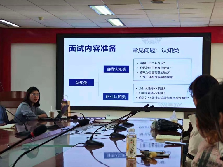 本次培训主要围绕面试内容的准备与技巧开展,陈佳老师将面试内容分成了认知类、分析类和解决类这三个维度进行阐述。在认知层面,她引导同学们明确自我职业定位,深入了解目标岗位的工作职责和行业趋势。在个人价值观与企业文化匹配的分析环节,陈老师从国家层面、行业层面到个人层面的三层结构展开阐述,指出面试官往往通过这些维度评估求职者的价值观是否与企业文化相符。在解决类层面,陈老师重点讲解了日常工作和突发事件的应对思路,她指出,企业更看重的是求职者的通用素质,例如自主学习能力、沟通协作能力以及可迁移的技能。