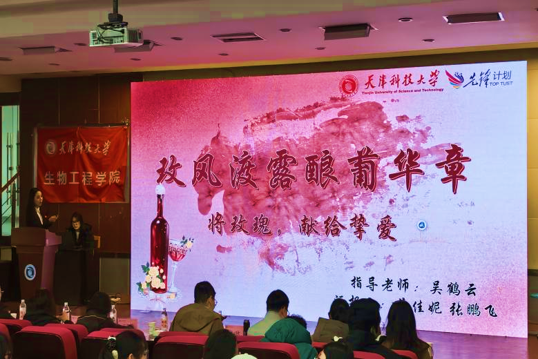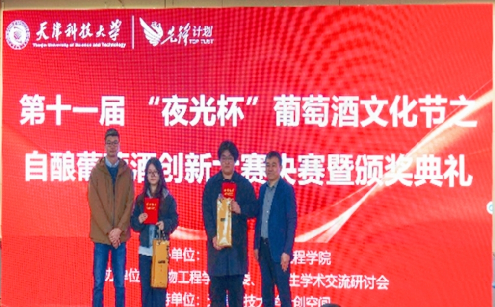 醇厚酒香飘满赛场,青春创意碰撞传统。12月15日,天津科技大学生物工程学院第十一届“夜光杯”自酿葡萄酒创新大赛决赛顺利举办,18支晋级队伍以酒为媒,展现了生物工程专业的实践创意与传统文化传承的热情。